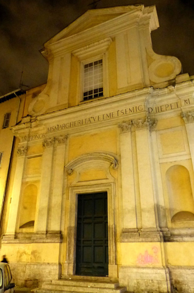 | Eglise Santa Margherita ou église Sainte-Marguerite-de-Trastevere située sur la place Sant'Apollonia. La première église fut érigée en 1288 sous le pontificat de Nicolas IV. Elle est reconstruite une première fois en 1564 avec les fonds de donna Giulia Colonna qui lui adjoint un monastère pour femmes. Puis, elle est à nouveau reconstruite en 1680 par le cardinal Girolamo Gastaldi qui charge l'architecte Carlo Fontana d'en dresser les plans. |