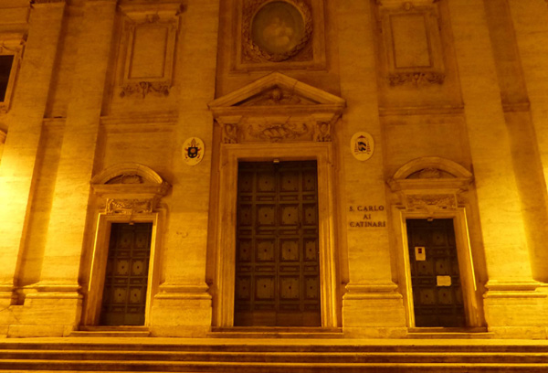 | Eglise San Carlo ai Catinari située sur la place Benedetto Cairoli, dans le quartier de Sant'Eustachio. L'église actuelle est l'héritière d'une petite église du 12ème siècle. En 1612, pour permettre l'agrandissement du couvent de l'ordre des Théatins, l'église est démolie. Elle est achevée vers 1620 et consacrée en 1722 par le pape Clément XII. |
