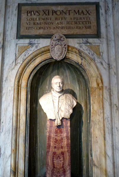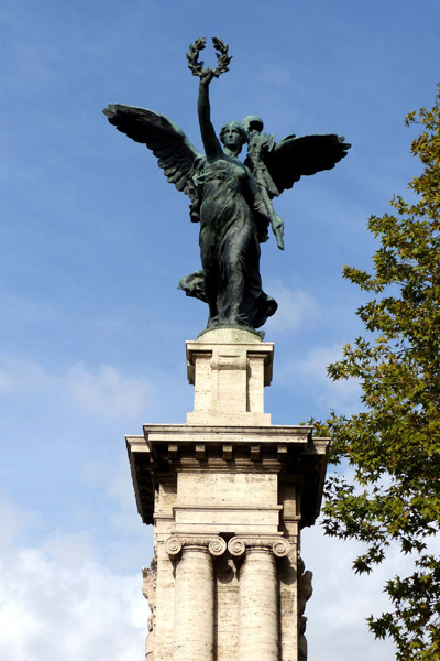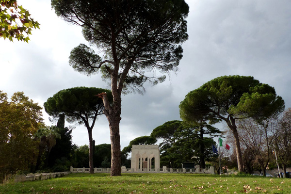 | Mausolée ossuaire du Janicule (Mausoleo Ossario Garibaldino), inauguré le 3 novembre 1941, il accueille les restes des hommes et femmes tombés parmi les troupes de Garibaldi lors des batailles pour Rome contre les français en 1849 et lors des insurrections qui suivirent jusqu'en 1870. |
