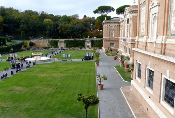 | Les Jardins du Vatican couvrent plus de la moitié de la superficie du territoire du Vatican. Les jardins ont été créés à la Renaissance et à la période baroque et sont décorés avec des fontaines et des sculptures. |