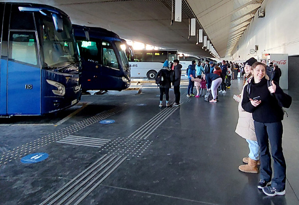 | Gare routière de Grenade où Beatriz, Maé et moi prendrons un car pour la station de ski de Pradollano dont l'accès n'est autorisé qu'avec des chaînes ou pneus neige. |