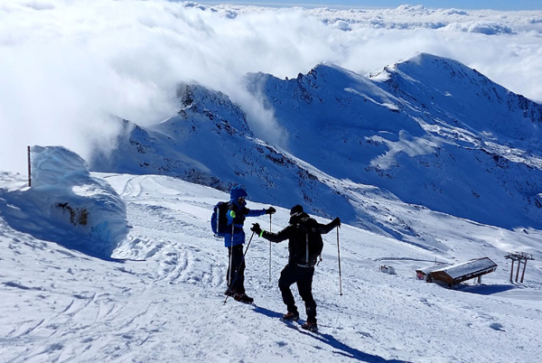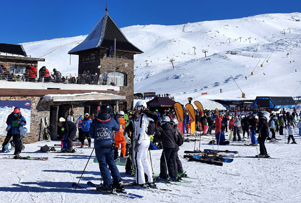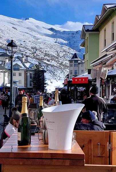 | Retour à la station de Pradollano où nous pique-niquerons et terminerons cette blanche et belle journée. |