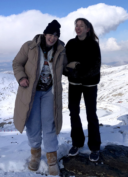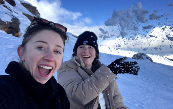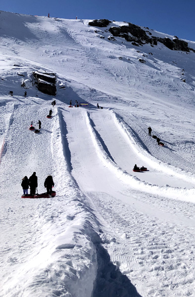 | Pendant ce temps, Beatriz et Maé découvrent les sensations de la bouée sur neige... |