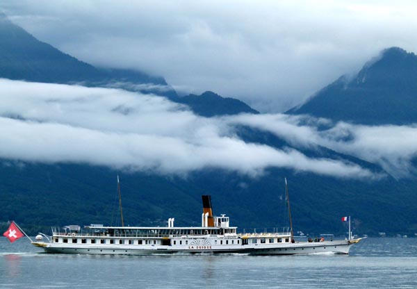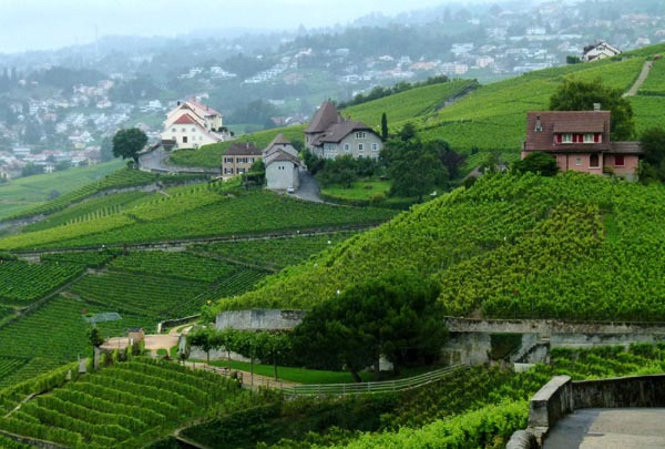 | La "Route de la corniche" à travers les vignobles en terrasses surplombant le lac Léman |