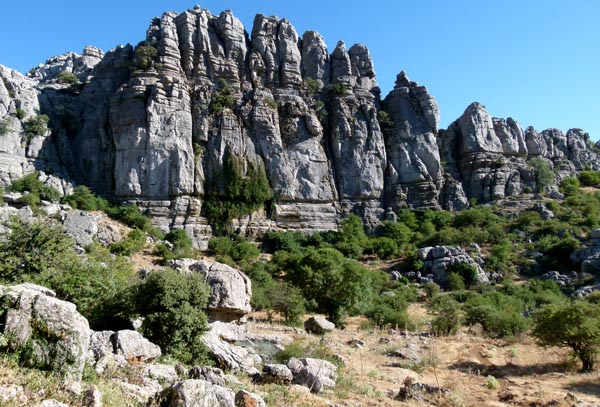 | Espace naturel situé sur la commune d'Antequera, le Torcal s'étend sur une superficie de 20 km². Célèbre pour les formes que l'érosion a donné à ses roches calcaires, il constitue un bel exemple de paysage karstique en Europe. Les origines du Torcal remontent au Jurassique, il y a 200 millions d'années. |