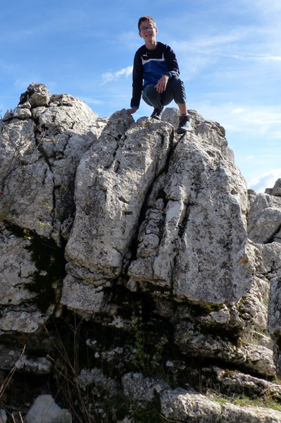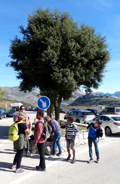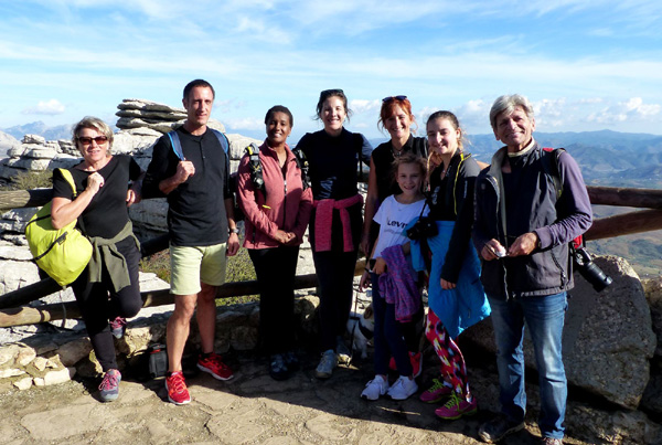 | Arrivée au plateau du Torcal (1230 m) De gauche à droite : Marie, Thibaut, Lydia, Nicole, Stéphanie, Juliette, Camille et Jean-Pierre |