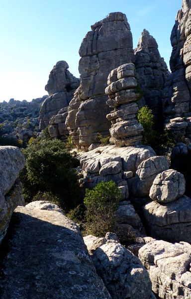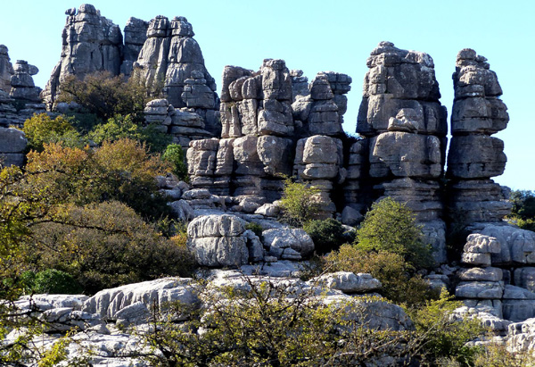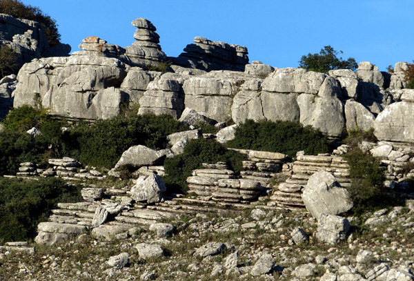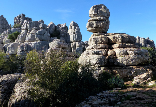 | Espace naturel situé sur la commune d'Antequera, le Torcal s'étend sur une superficie de 20 km². Célèbre pour les formes que l'érosion a donné à ses roches calcaires, il constitue un bel exemple de paysage karstique en Europe. Les origines du Torcal remontent au Jurassique, il y a 200 millions d'années. |