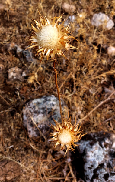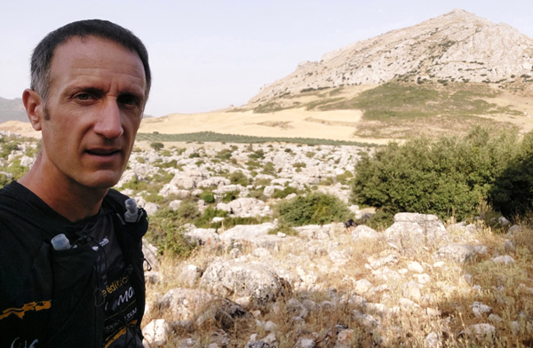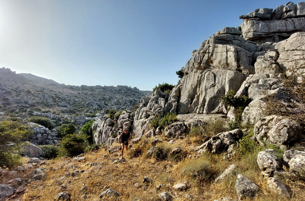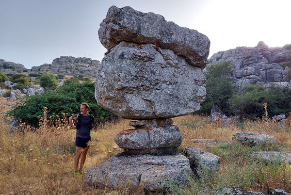 | Samedi 14 août 2021, 7h, déjà 27ºC, Nico et moi. Ascension du Massif du Torcal (1336 m) au départ des hauteurs du village de Villanueva de la Concepción. |