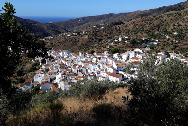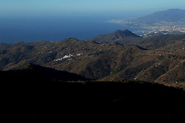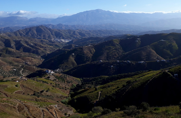 | Village de El Borge (240 m) et La Maroma (2068 m) en arrière-plan |