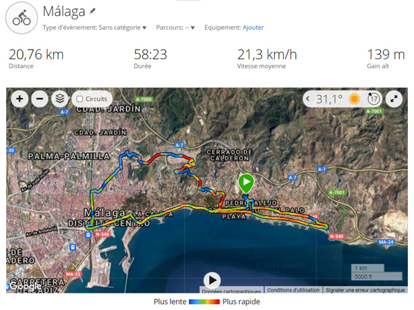 | MÁLAGA - LAGUNILLAS - MÁLAGA 20,8 KM, 140 M de dénivelé positif / 2021 - ESPAGNE, Andalousie |