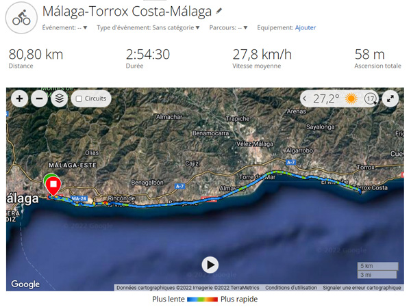 | MÁLAGA - TORROX COSTA - MÁLAGA 80,8 KM, 58 M de dénivelé positif / 2022 - ESPAGNE, Andalousie |