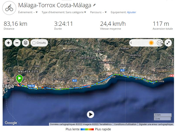 | MÁLAGA - TORROX COSTA - MÁLAGA 83,2 KM, 117 M de dénivelé positif / 2022 - ESPAGNE, Andalousie |