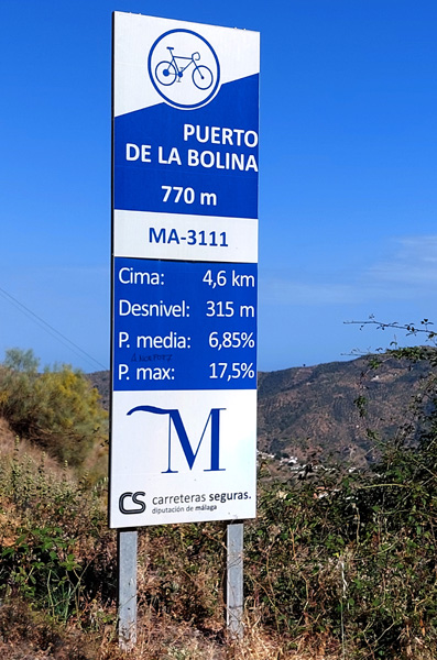 | Ascension du Col de la Bolina (770 m), des pentes jusqu'à 17,5% ! |