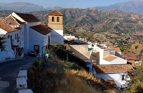 | Moclinejo atteint à la force des mollets après une montée raide et sans répit... |