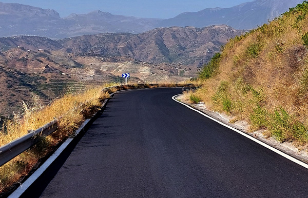 | Descente vers Benamargosa avec des pointes à plus de 70 km/h dans un vent chaud et sec |