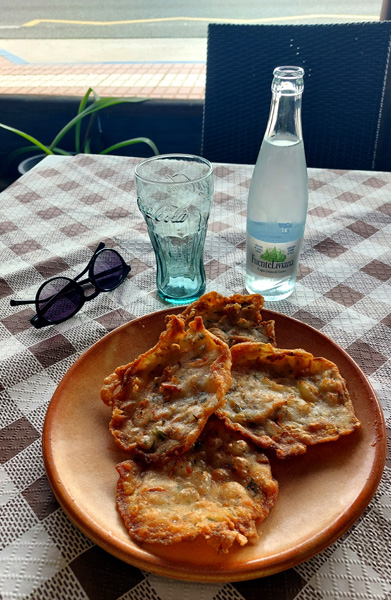 | Pause déjeuner au restaurant "Kiosco Lagos" : omelette à la morue |