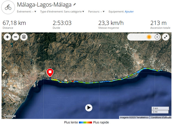 | MÁLAGA - LAGOS - MÁLAGA 67,18 KM, 213 M de dénivelé positif / 2025 - ESPAGNE, Andalousie |