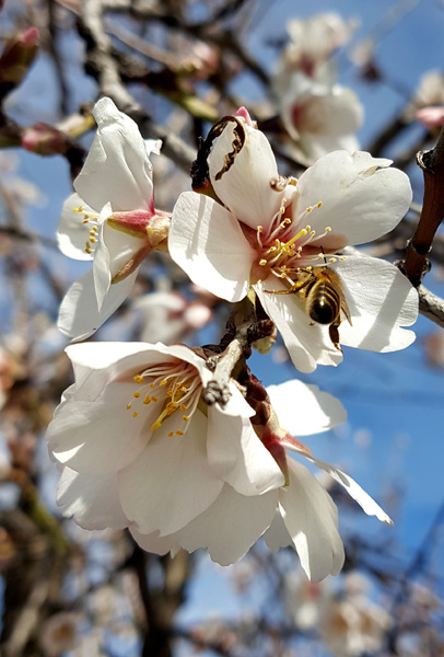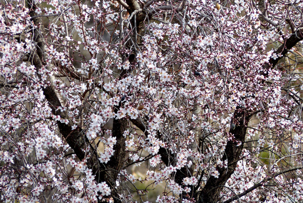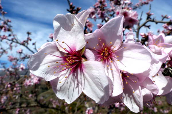 | La beauté des fleurs d'amandier vient colorer les paysages austères et arides de cette partie des Alpujarras |