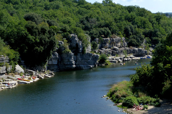 | Gorges de l'Ardèche, vertigineux canyon (jusqu'à 300 m de haut) creusé dans le plateau calcaire, couvert de guarrigues et de chênes verts. Réserve naturelle nattionale depuis 1980 |
