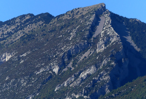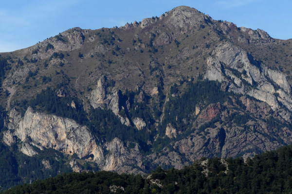 | Massif du Pedraforca (2507 m d'altitude), montagne emblématique de la Catalogne à la forme particulière, formée par deux crêtes parallèles reliées au milieu par un col, l'Enforcadura. |
