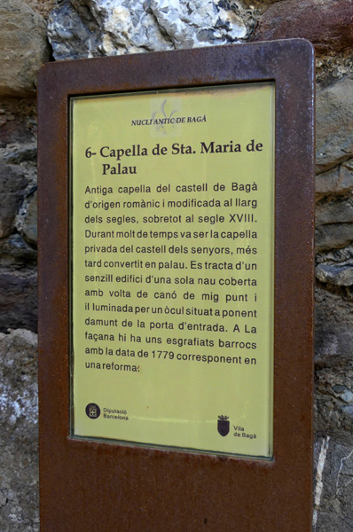 | La chapelle Santa Maria de Palau, ancienne chapelle du château de Bagà (13ème siècle), a été modifiée au fil des siècles, notamment au 18ème siècle. |