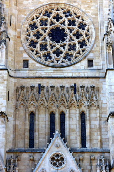 | Merveille gothique, la cathédrale Saint-André fut d'abord une basilique romane, consacrée en 1096. Deux mariages royaux y furent célébrés, celui d'Aliénor d'Aquitaine et de Louis VII (1137) et celui de Louis XIII et d'Anne d'Autriche (1615). L'édifice actuel fut élevé entre le 12ème et le 16ème siècle. |