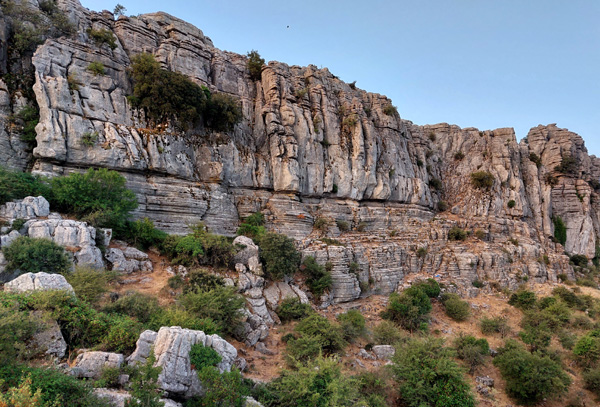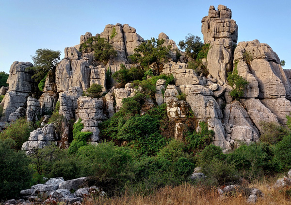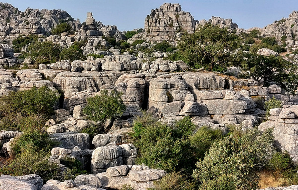| Le Torcal de Antequera est un espace naturel célèbre pour les formes que l'érosion a donné à ses roches calcaires. Il s'étend sur 20 km² et constitue un bel exemple de paysage karstique en Europe. Ses origines remontent au Jurassique, il y a 150 millions d'années. La zone se trouvait alors sur un long couloir maritime unissant le Golfe de Cadix à Alicante. Les plissements alpins provoquèrent l'émergence des sédiments calcaires déposés au fond de ce bras marin et donnèrent naissance à ces montagnes, dont les sommets prirent souvent une forme arrondie. |
