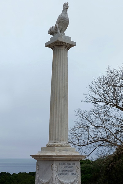 | En arrière-plan : la Batterie du Pradeau, dite "Tour Fondue", édifiée entre 1633 et 1637 sur ordre de Richelieu pour protéger le mouillage et la passe située entre l'île de Porquerolles et la presqu'île de Giens. |