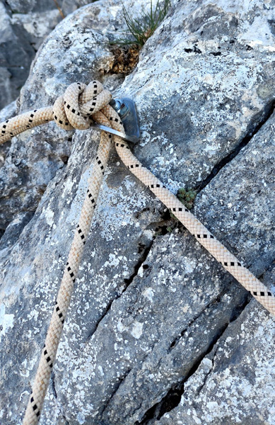 | La vie ne tient qu'à un fil... Pour info, la résistance à la rupture de la corde est supérieure à 2000 kg. |