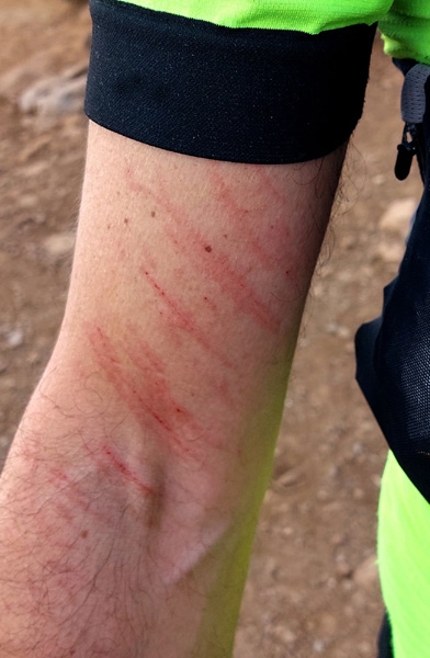 | Selfie en toute sécurité, la corde fermement enroulée autour de sa main gauche. |