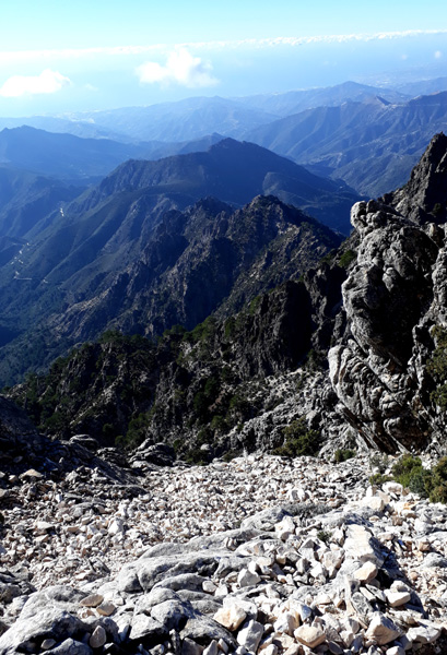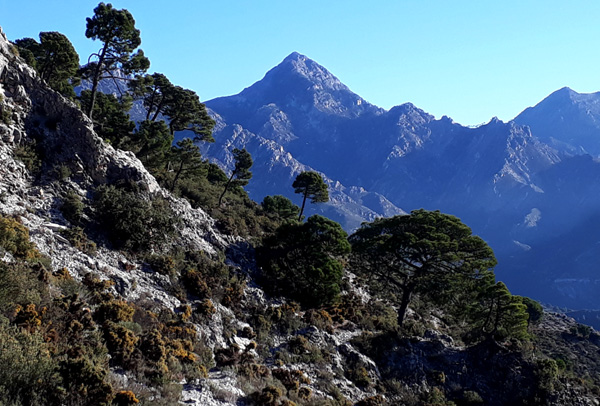 | Pic del Lucero ou Raspón de los Moriscos (1779 m), quatrième sommet le plus haut sommet de la province de Malaga. Ruine d'un ancien poste de la Guardia Civil espagnole (Gendarmerie) construit dans les années 1940 pour contrôler la résistance au franquisme dans les maquis. Le poste de garde restant illuminé la nuit, le pic fut baptisé El Lucero ("L'étoile"), bien que son véritable nom soit El Raspón de los Moriscos ("L'Egratignure des Maures"), dénomination en relation avec les rébellions qui eurent lieu au 16ème siècle en Axarquía. |