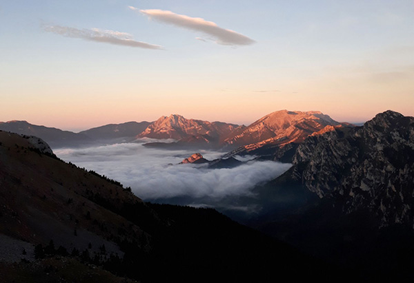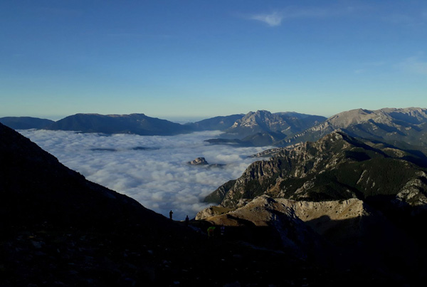 | Le jour se lève sur le Parc Naturel de Cadí-Moixeró : 2 grandes chaînes, le Cadí et le Moixeró, unies par le col de Tancalaporta, forment une impressionnante barrière montagneuse à l'endroit où les Pyrénées rencontrent les pré-Pyrénées. |