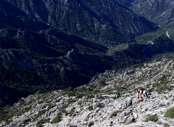 | Dimanche 5 juillet 2020, 7h, ascension du Pic del Lucero (1779 m) au départ du hameau de El Acebuchal (490 m), sur les hauteurs du village blanc de Frigiliana |