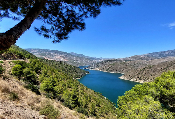 | Village de Bubión (à gauche), ravin de Poqueira (au centre) et Sierra de Lujar (en arrière-plan) |