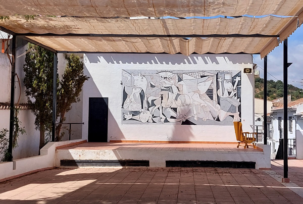 | Reproduction de "Guernica", peinture du peintre espagnol Pablo Picasso, réalisée en 1937. Une de ses oeuvres les plus célèbres et un des tableaux les plus connus au monde. |