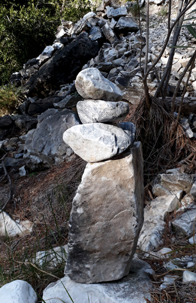 | Nous essayons d'abord de garder les pieds au sec en jouant les équilibristes... |