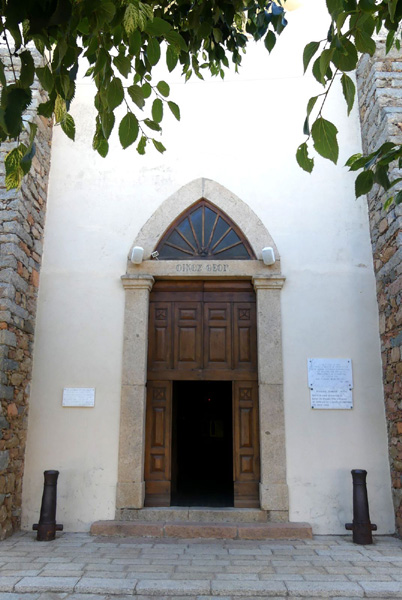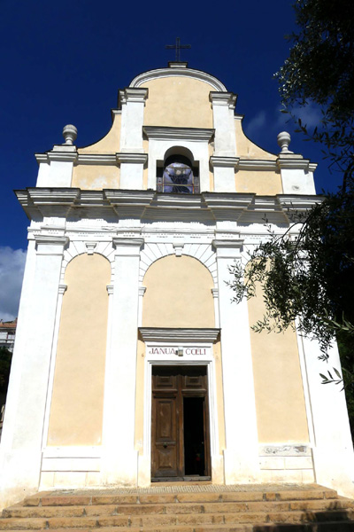 | Église Saint-Spyridon dite grecque, église grecque-catholique hellène édifiée par les habitants de Cargèse de 1868 à 1874, dédiée à Saint Spyridon, évêque chypriote du 3ème siècle et patron des marins. |