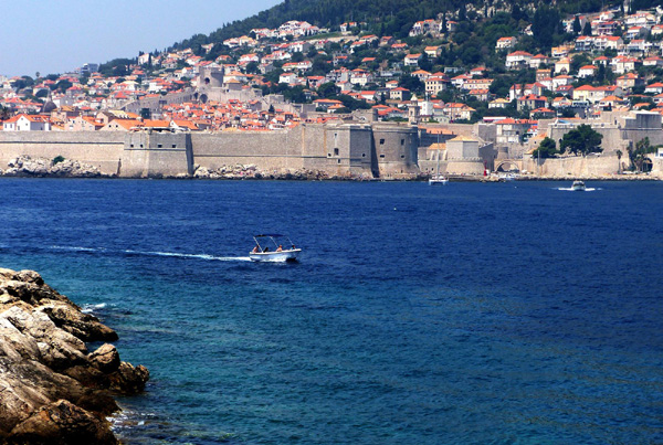 | Départ pour l'île de Lokrum... Lokrum (qui veut dire fruit amer en latin) s'étend sur 2 km de long et 500 m de large. Essentiellement recouverte d'arbres, l'île est classée réserve naturelle depuis 1964 et abrite de nombreuses espèces de plantes : les lauriers roses tutoient les cyprès, pins noirs et autres chênes mais aussi cactus, magnolias et eucalyptus. L'île est habitée dès 1023 à la suite du grand incendie qui ravagea Dubrovnik. La légende maléfique de Lokrum : Les moines vivaient paisiblement sur l'île lorsqu'en 1798, l'île fut vidée de ses religieux par les troupes napoléoniennes supportées par 3 personnalités de Dubrovnik. Les moines jetèrent alors un sort à quiconque viendrait habiter et posséder les lieux. Les responsables de l'expropriation ne purent pas jouir de l'île. Tous mourrirent tous très rapidement et de façon violente. La malédiction s'est depuis poursuivie et tous les propriétaires successifs de l'île connurent un destin tragique. Aujourd'hui, l'île est uniquement visitée par les touristes. |
