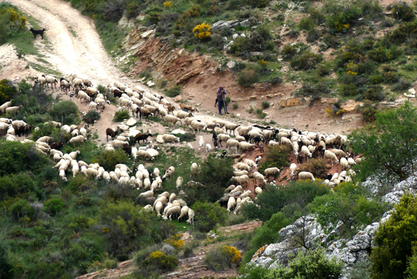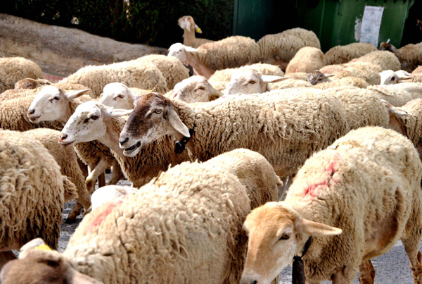 | Comme Jean-Pierre, nous suivrons le berger et son troupeau à travers le village, humbles moutons que nous sommes ! |