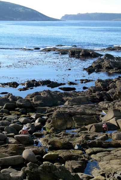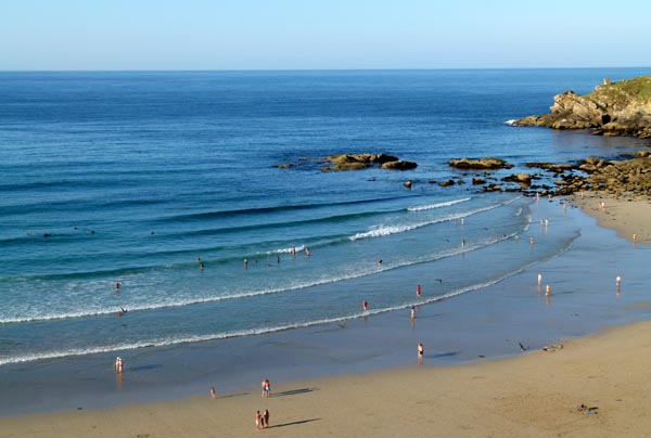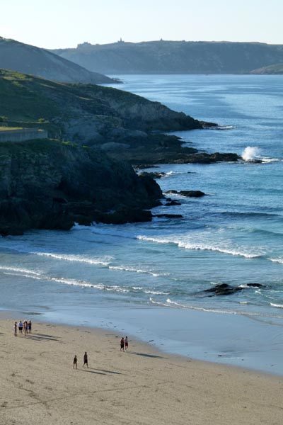 | Plage de Malpica et Cap et phare de San Adrian en arrière-plan |