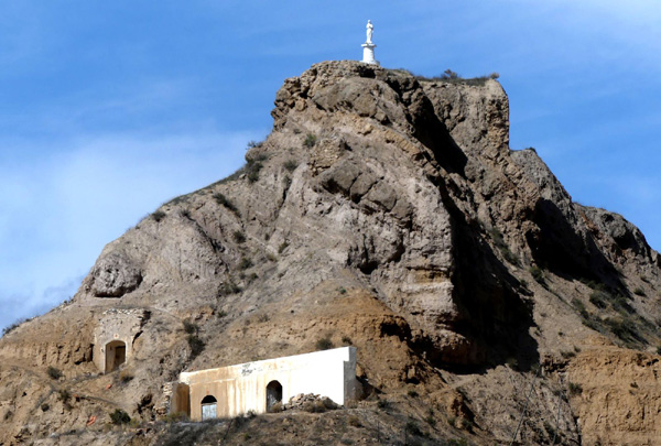 | Mirador de la Vierge de Fátima sur les ruines de l'ancien château de Gorafe, édifié à l'époque nazari (13ème siècle) |