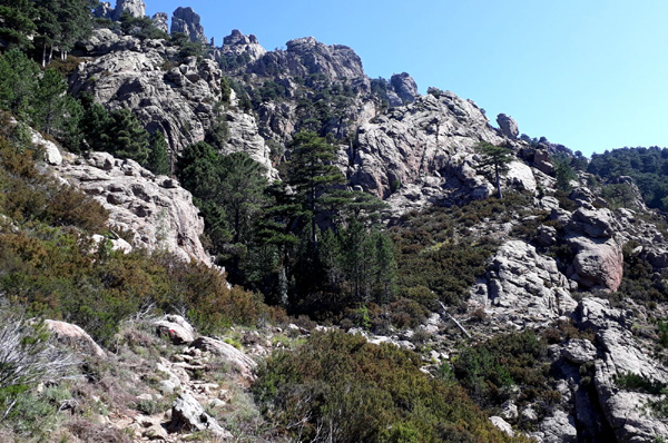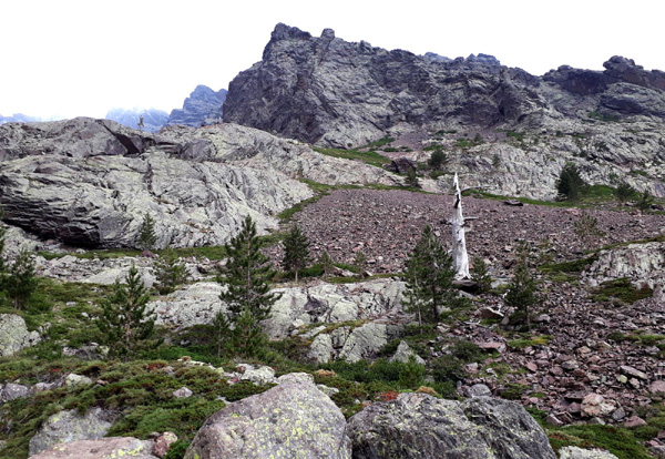 | On s'en fout car on n'a pas l'intention de coucher là ! Notre objectif est de rallier Conca et terminer le GR20 en fin d'après-midi. |
