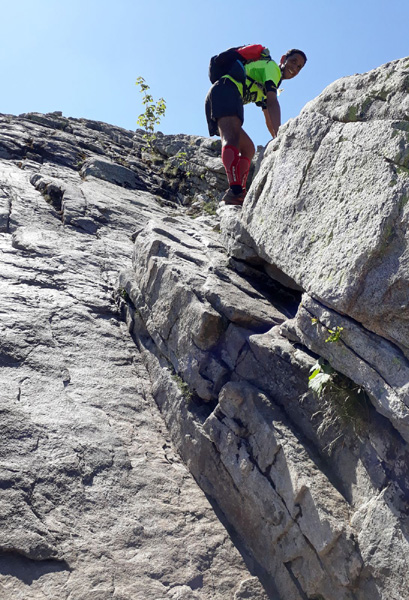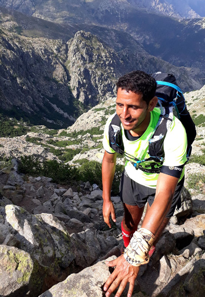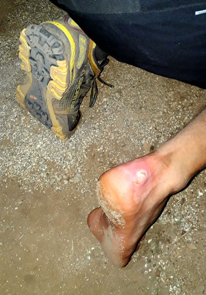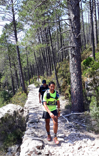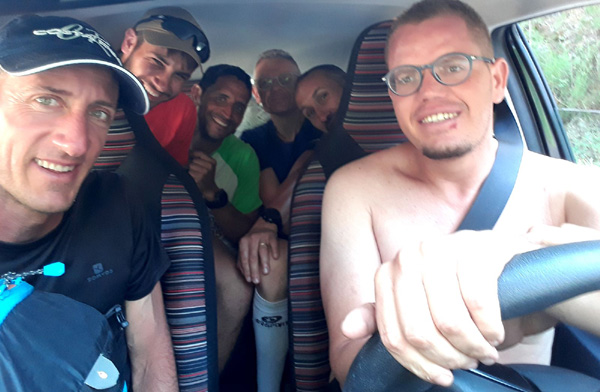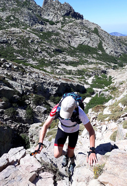 | Laurent vivra 46 km d'enfer jusqu'à l'arrivée à Conca (ampoules percées et peau à vif)... Seul un ancien légionnaire est capable d'endurer la souffrance aussi longtemps. |