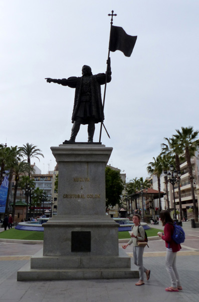 | Statue de Christophe Colomb pointant l'océan. C'est depuis le village de Palos de la Frontera, à quelques kilomètres du centre de Huelva, que Christophe Colomb s'embarqua lors de son premier voyage pour ce qu'il pensait être les Indes. |