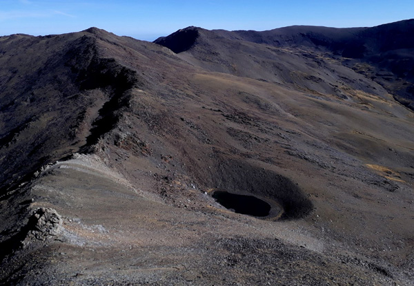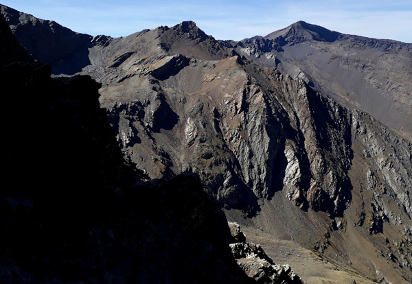 | Vue imprenable sur le Pico Veleta (3396 m) -en arrière-plan au centre- par lequel nous aurions du passé plus tard dans la journée... |
