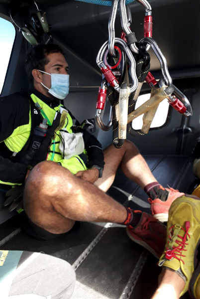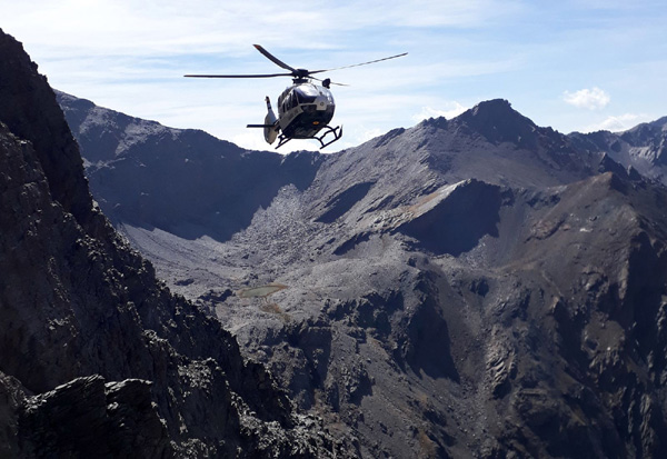 | L'hélico revient après avoir déposés Nico et Dani à la Hoya de la Mora près de la station de ski de Pradollano (2500 m) |