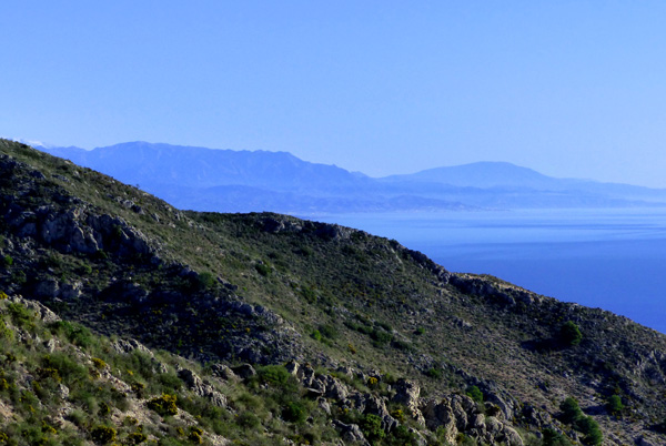 | Le Mirador de la Cañada del Lobo (la Gorge du Loup) à 550 m d'altitude : vue sur la Grande Bleue et Torremolinos |