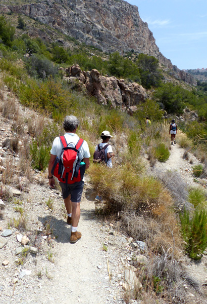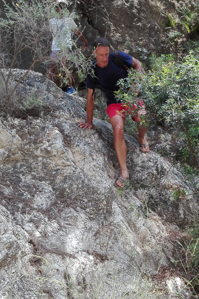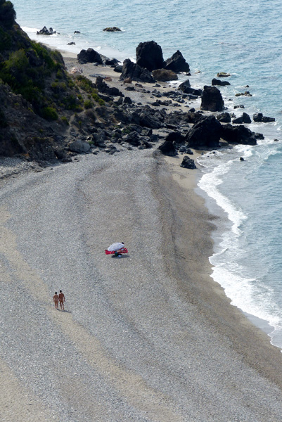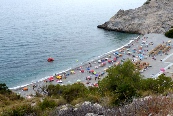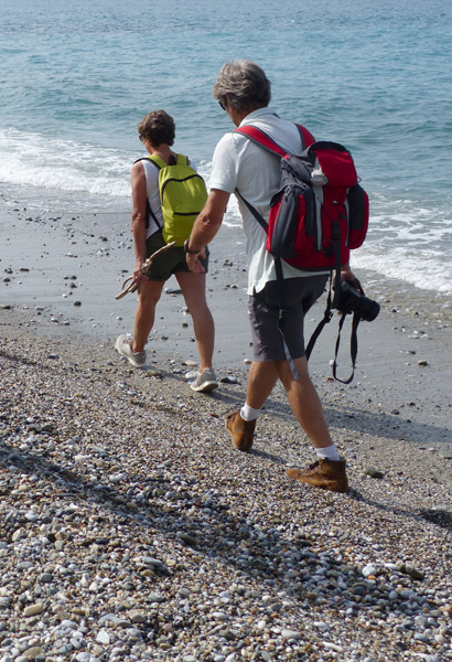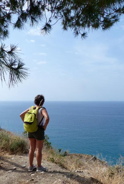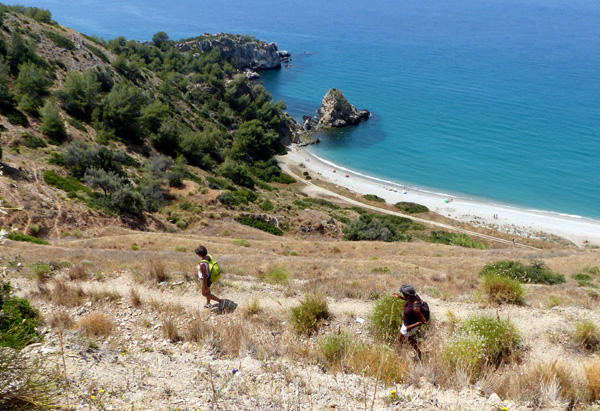 | Brève pause avant d'attaquer la descente à la plage del Cañuelo |