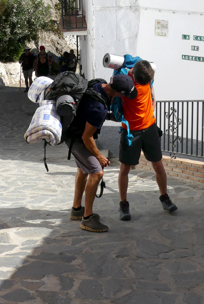 | 2 sacs (le mien et celui de Lydia), plus de 15 kg... un bon entraînement avant de contempler les étoiles ! |