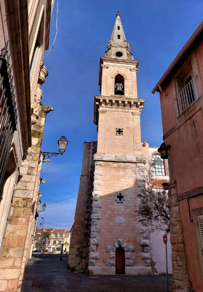 | Eglise Saint Geniès, dans le quartier de Jonquières, le long du canal de Caronte. Reconstruite au 17ème siècle, elle a été bâtie en 1625 dans un "esprit contre-réforme", en réaction à l'époque baroque. |